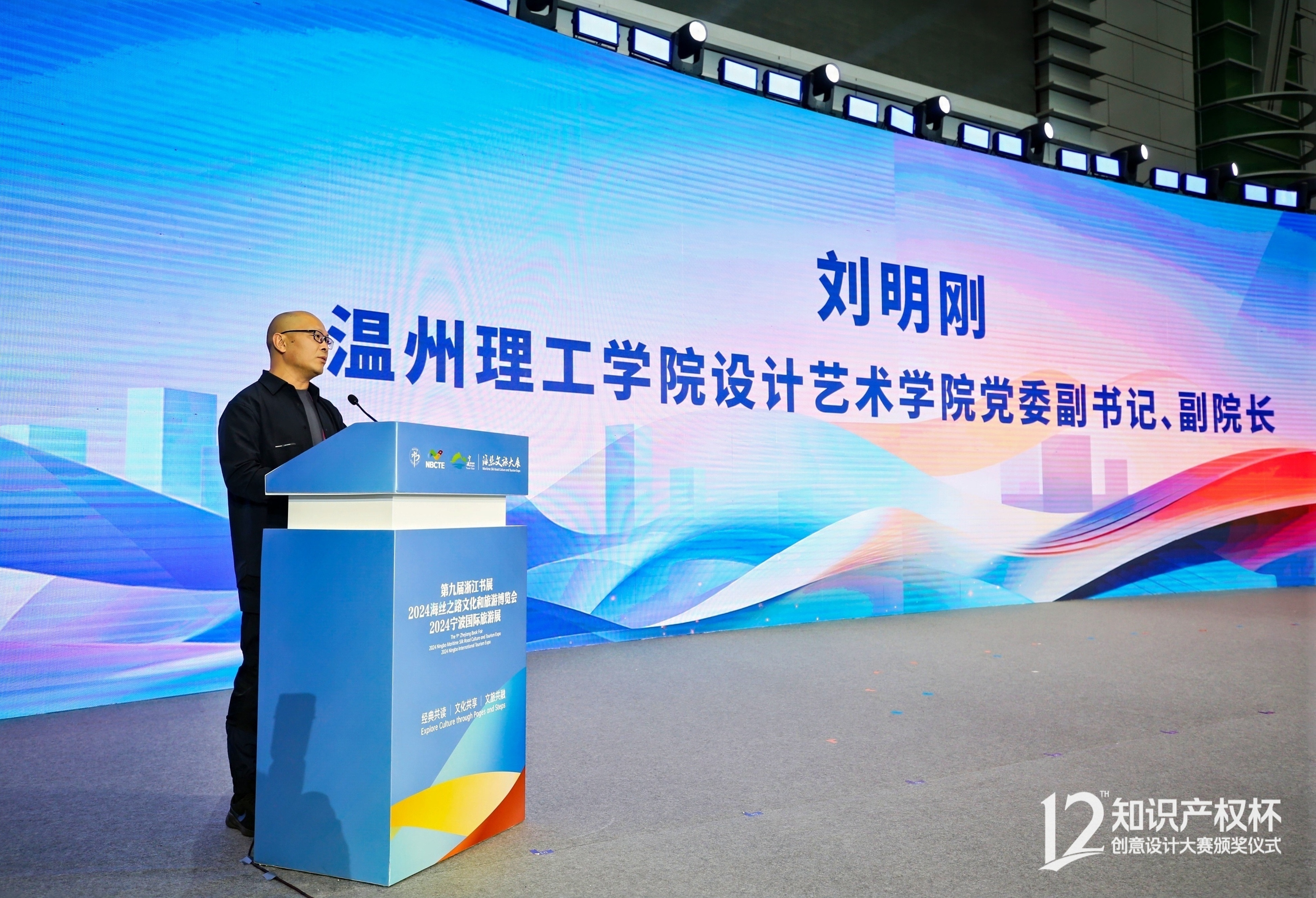 对于本届大赛的优秀作品,温州理工学院设计艺术学院党委副书记、副院长刘明刚表示高度赞扬,同时,作为本届大赛的评审专家,刘明刚院长现场对一等奖获奖作品做简短点评。最后他总结:“本届大赛作品不仅有对当下生活的思考、也有对传统文化的期许;有对设计的创新应用、也有对设计未来的展望。获奖作品在创意性、艺术性、规范性、实用性、技术性上均有很好的艺术表现。”