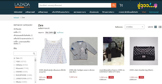 (Lazada泰国站Zara的搜索结果)