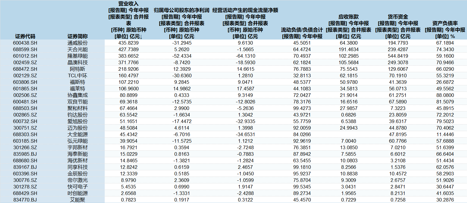 Wind数据显示,这波大涨的光伏股中,隆基绿能、通威股份、TCL中环今年上半年亏损额度居前,隆基绿能净利亏损52.43亿元。