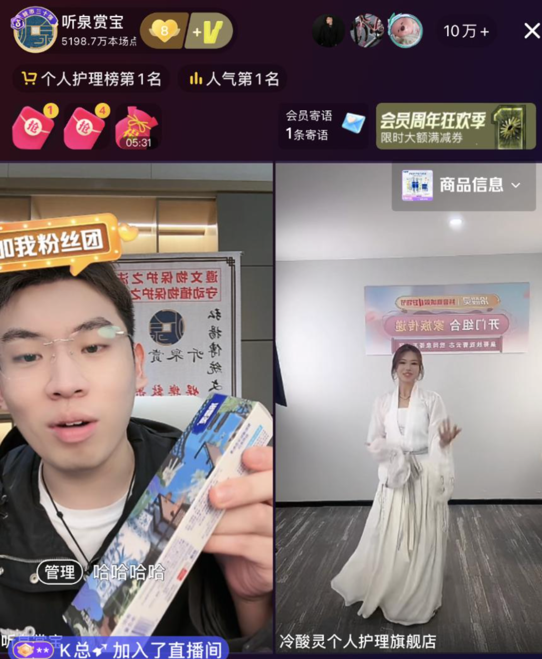 尽管这批新晋顶流的带货能力尚待验证,却能在双十一之际带给抖音不少声量。10月18日晚,“听泉鉴宝”在复播第三天开启直播带货首秀,虽然750万的销售额并不算出色,但正如他在直播中所说“双十一了,电商有活动咱们也得支持一下”。他的核心价值或许并不在于为平台贡献多少GMV,更在于为平台的大促节点提供话题性和关注度,让抖音在电商大战如火如荼之际不至于“失声”。