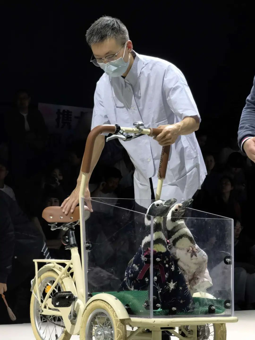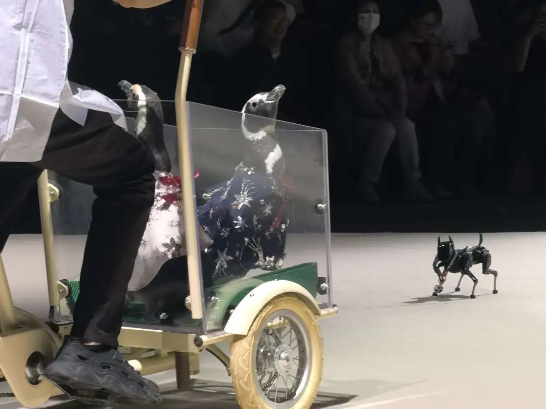 开幕式上,来自上海海昌海洋公园的明星企鹅兄弟大Q、小Q也受邀登台走秀。作为海洋界的明星翘楚,虽然它们已“打卡”过众多上海地标场所,但第一次登上时尚秀场还是有些害羞。
