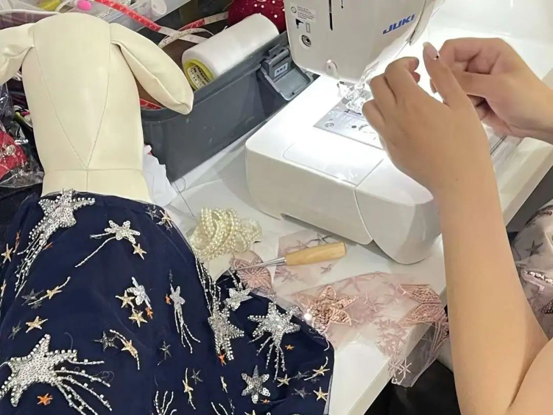 “说起企鹅,人们就会联想到寒冷的地方,所以我们在设计衣服时就用水钻缝制了这些雪花、星星等元素,在材质上则选择丝绸等比较亲肤的材质。”GIGIWAWA宠物亲子服装品牌主理人陆阳阳说,作为一家专注于做猫狗宠物亲子装的企业,还是首次接待这样身材的“贵客”,“不过我们产品本身也有高定系列,因此制作过程还算是比较顺利。”