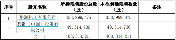 解禁数量超过1亿股的公司共4家,分别为中材国际、华润材料、盛泰集团(605138.SH)和上海汽配(603107.SH)。
