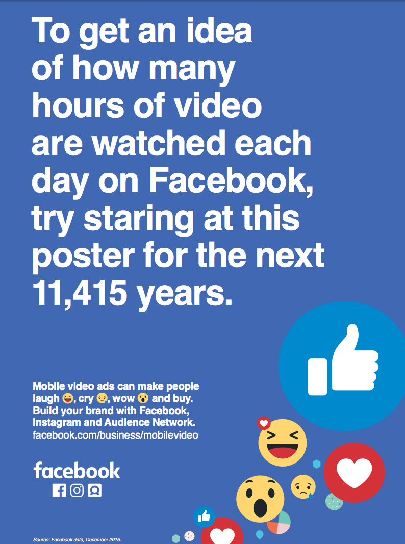 为了销售出更多的视频广告服务,Facebook推出了一个规模庞大的营销战役。这次它的目标对象是广告代理公司和一些创意机构,让他们知道移动视频广告可以带来多么强大的效果。