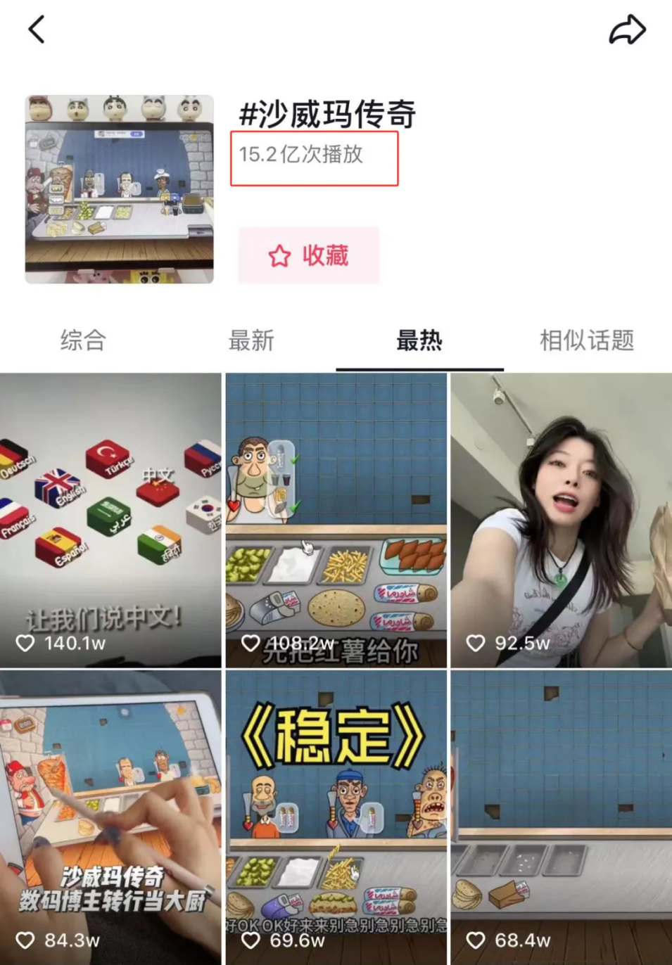抖音的相关话题播放量超过15亿,B站也不乏超百万级的《沙威玛传奇》二创作品。