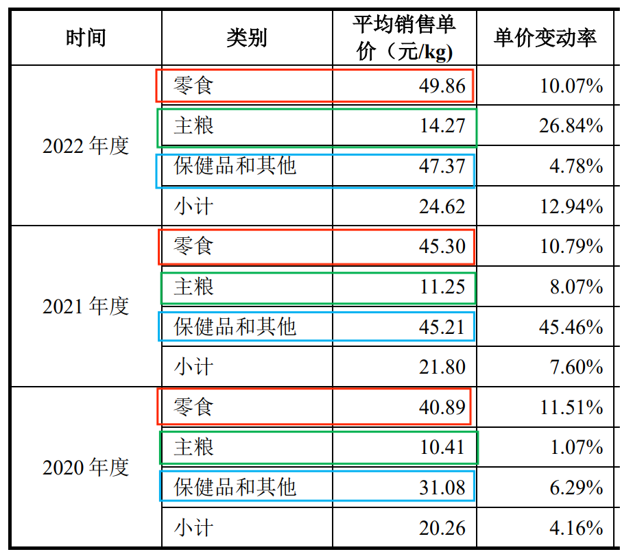 同期,其主粮每千克平均销售单价从10.41元上涨到14.27元;保健品和其他产品则从31.08元上涨到47.37元。