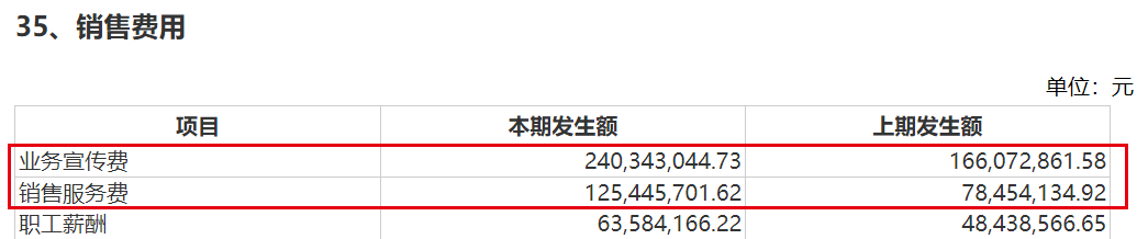 在三季度财报中,乖宝宠物没有披露宣传费和服务费的具体数据,但其披露的中期财报显示,2024年上半年,企业的销售费用达到4.62亿元。其中,业务宣传费、销售服务费合计3.66亿元,甚至超过了企业上半年的归母净利润3.08亿元。