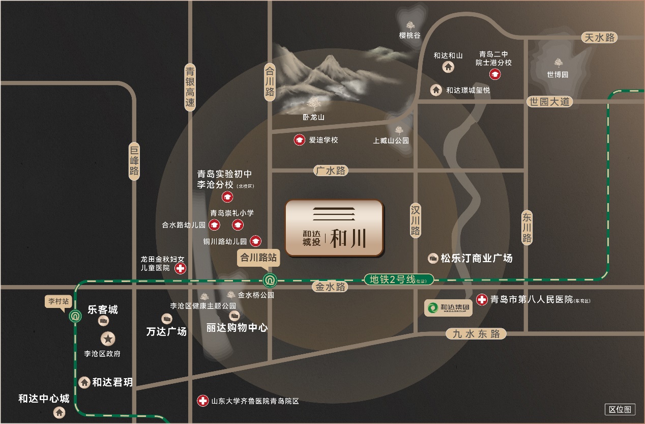 项目位处东李卧龙山南,坐享1公里步行生活圈,项目距离地铁2号线合川路站仅300米,近享丽达购物中心、松乐汀商业广场、李沧万达广场等品质商业以及全龄教育配套,还有金水桥公园、延川路文体公园等主题公园,既能享受城市的生活配套,又能享受优越的生态环境,是东李改善不可多得的高质产品。