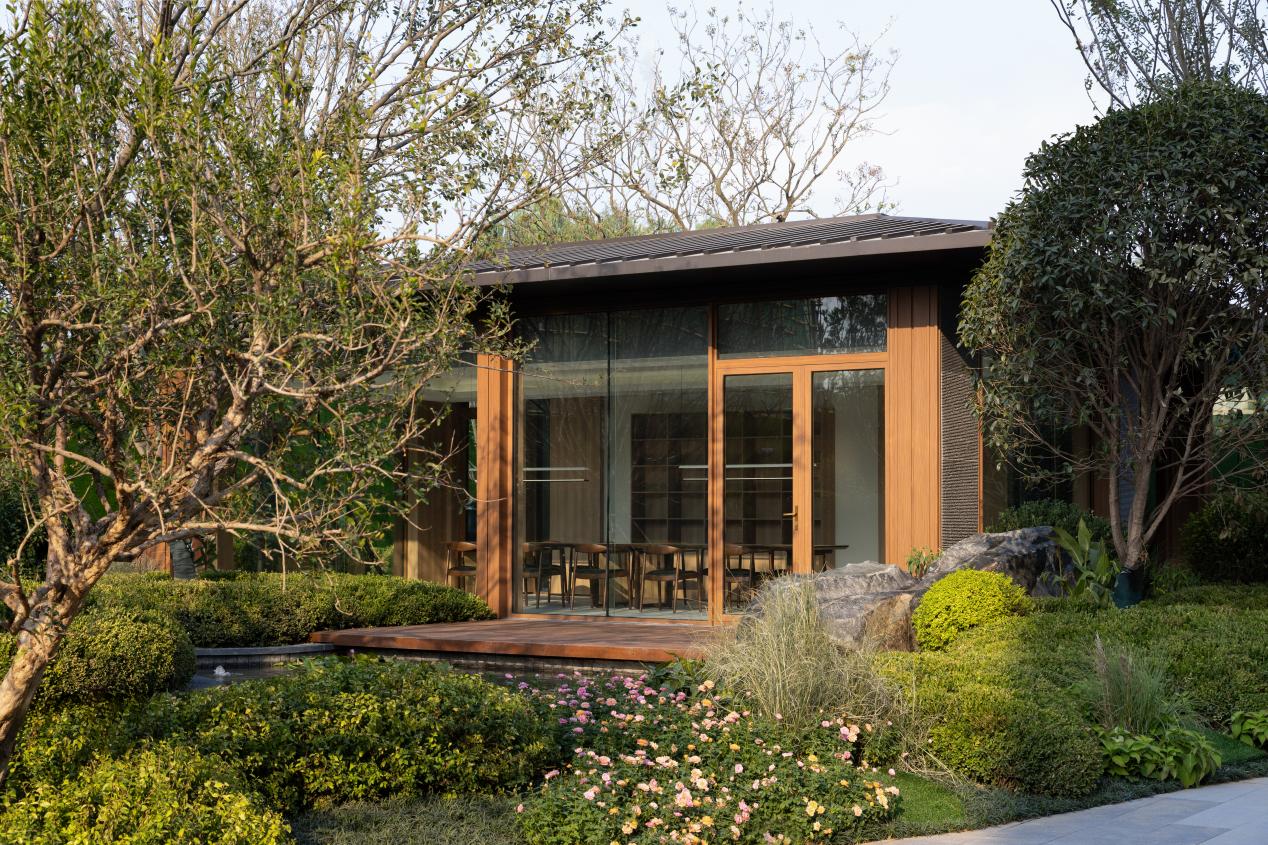 低密墅境之上,和达·城投 | 和川以宋风美学为基础,匠造“二轴八庭”园林空间,打造隐溪、石涧、映汐等主题空间,融入宋式美学会客厅,私享茶室业主独立空间。精选朴树、金桂、黄栌、鸡爪槭、樱花等稀贵树种,错落有致排布,色彩协调相生,做到四季皆景。