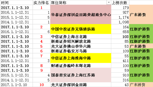如果将时间再后退一些,从今年以来暂时排位前十名营业部,梳理他们近年来登榜的频率,你仍然能发现其中的奥秘。