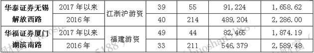 转至2016年,券商营业部龙虎榜的前十强绝大部分被华泰证券和中信证券所占据,各自有3家营业部登榜。龙虎榜上的前十强全部换脸,营业部格局也由一家独占到两家并驾齐驱。