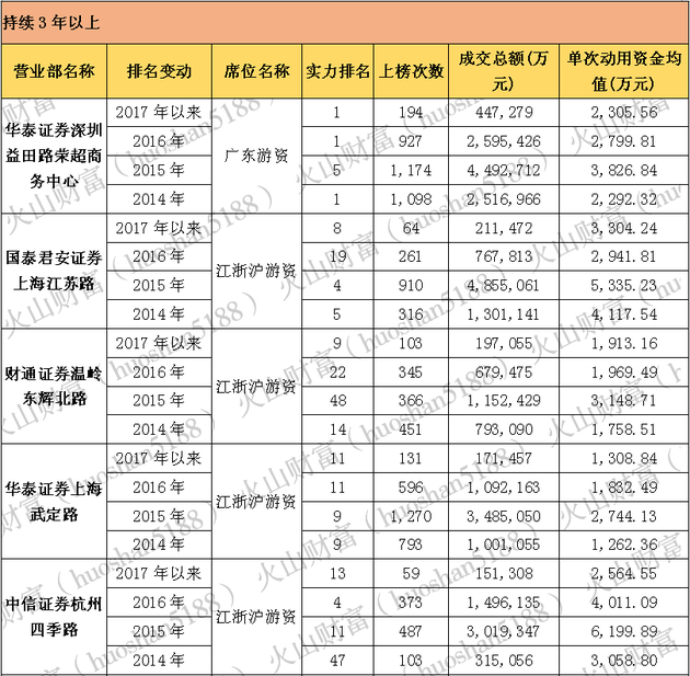 最近3年龙虎榜上券商营业部活跃人气风云榜