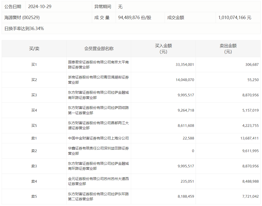 具体来看,知名游资现身龙虎榜,中国中金财富证券有限公司上海分公司、华鑫证券深圳益田路证券营业部分别卖出1368.74万元、961.20万元;作手新一(国泰君安证券南京太平南路证券营业部)、浙商证券青田涌潮街证券营业部分别买入3335.40万元、1404.81万元。