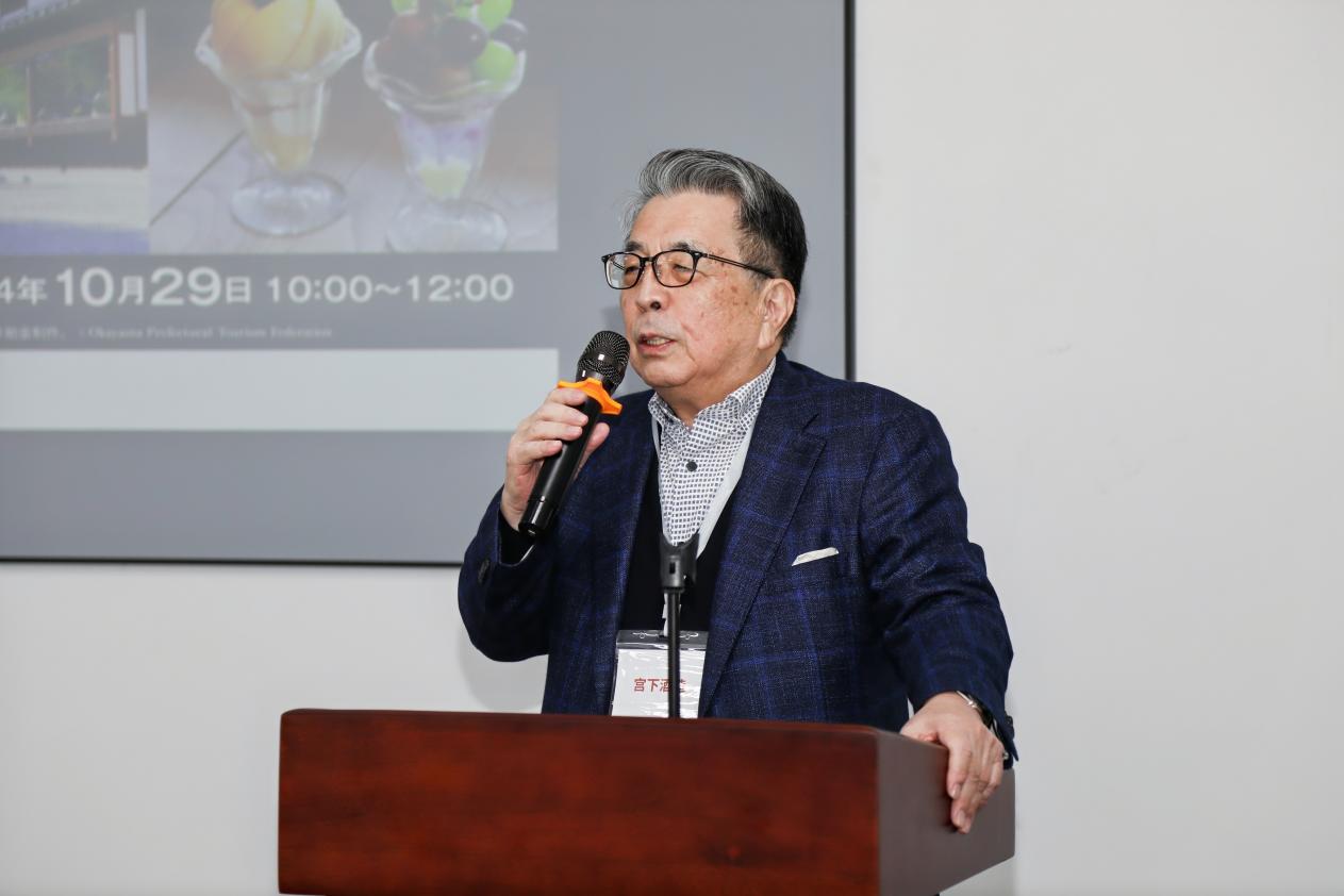 在冈山清酒会旅行社特别推介会上,宫下酒造株式会社社长宫下附一龙在致辞中表示,日本酒的精髓在于米的质量,大米最开始则是从中国进入日本的,而冈山县就是日本最先种植大米的地方之一,因此冈山县酿造的日本酒特别好喝。他希望,与会嘉宾有机会一定要来日本、来冈山品尝一下日本酒。