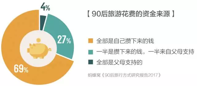 另一方面,90后平均税后月收入为4891元,但每年平均花费11810元在旅行上。69%的90后表示自己会承担全部的旅游花费。