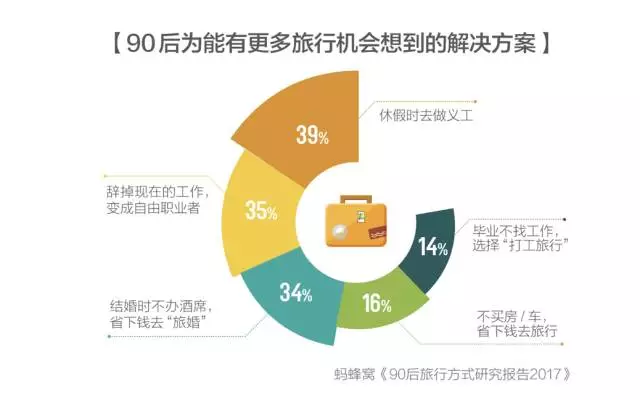 以年轻为资本,90后为了增加旅行机会想出了各种各样的解决方案。39%的90后表示考虑过以做义工到外地旅行,35%曾有过“辞掉工作,成为自由职业者”的想法。