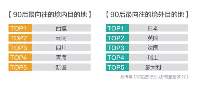 大数据显示,最受90后喜爱的境内目的地在中国西部,如西藏的拉萨、林芝,云南的丽江、大理,四川的成都、稻城亚丁,青海与新疆等。与北上广深等大都市相比,90后更偏爱拥有自然风光与特色文化的地区。