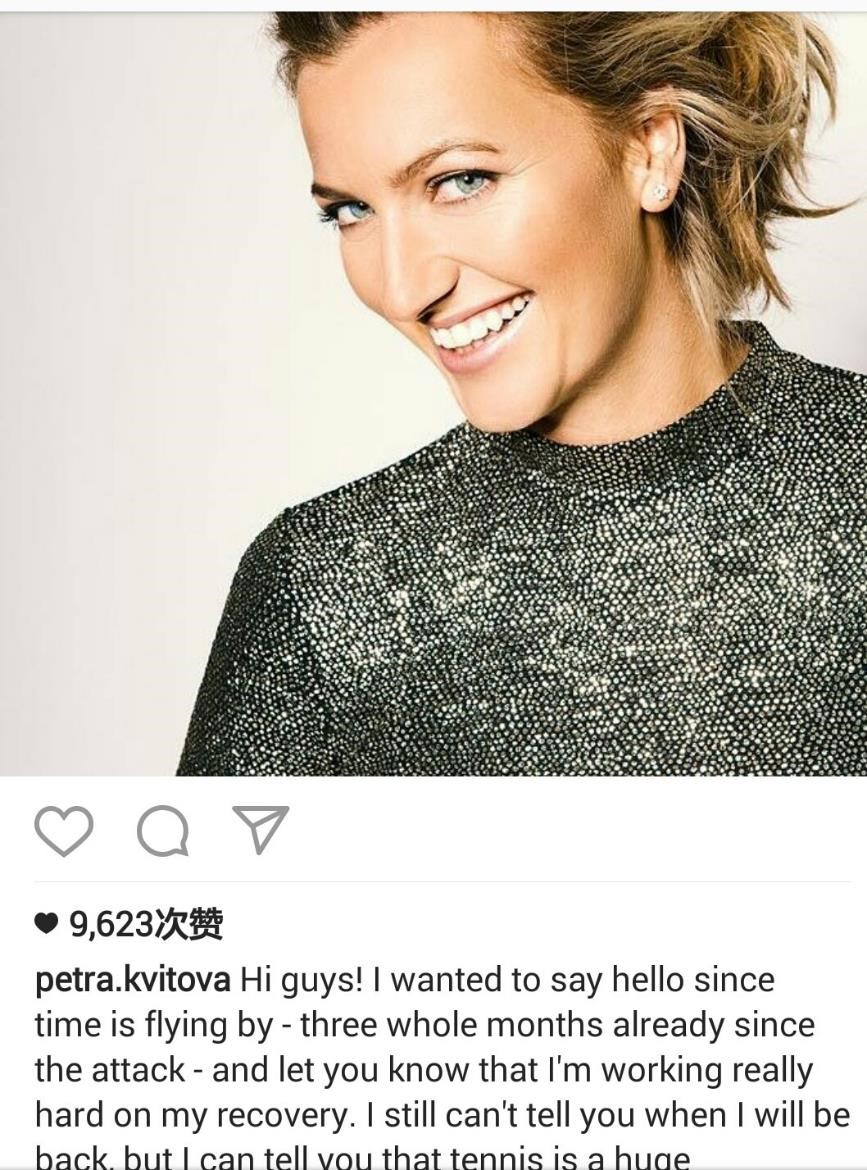 捷克选手佩特拉·科维托娃在自己的instagram表示归期未定。