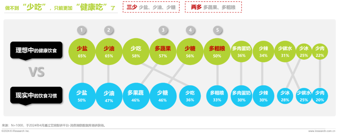 大众对健康饮食习惯的理解是“减”少负担、增“加”营养、尽量少吃