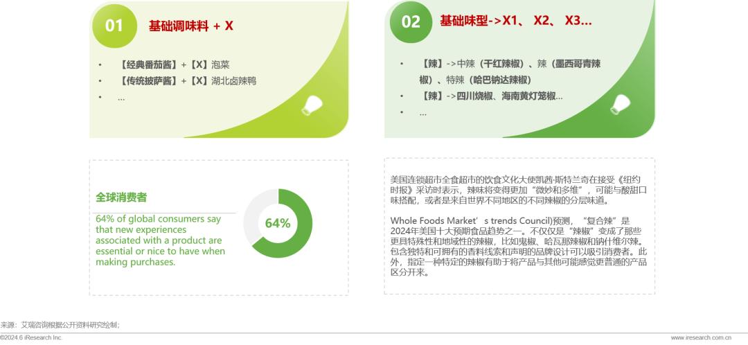 64%的全球消费者表示希望在基础产品之上,解锁新体验。调味品,尤其是复合调味品具有明显的零食属性,人们始终想要尝试新味道,期待有美味但意想不到的调味品。