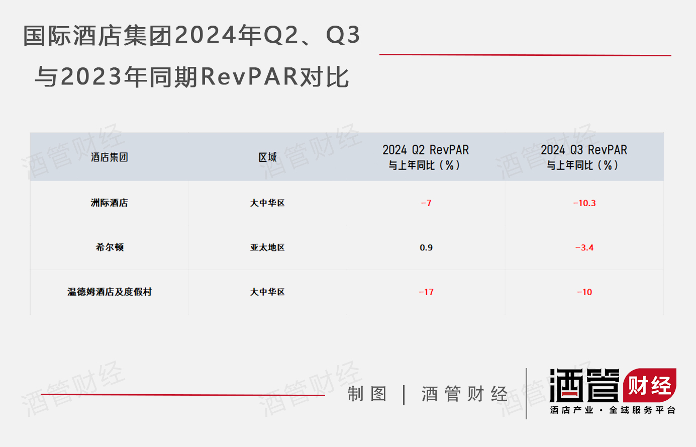 财报数据显示,洲际、希尔顿、温德姆这三家国际酒店巨头在大中华区RevPAR已经连续两个季度保持疲软,且下滑速度已隐隐有加快趋势。