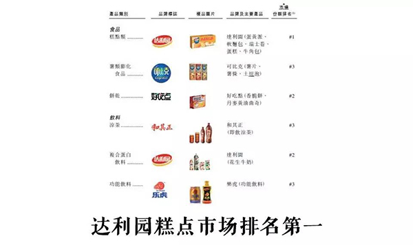 达利园糕点类:2002年推出,按零售销售额计,在中国糕点类类别中排名第1。