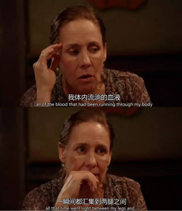 在大姐说到第9分钟的时候,剧里才出现了第一个反打镜头,这时候你才知道,原来大姐的讲述对象是Horace。而此时此刻,观众已经和Horace一样,听傻了——