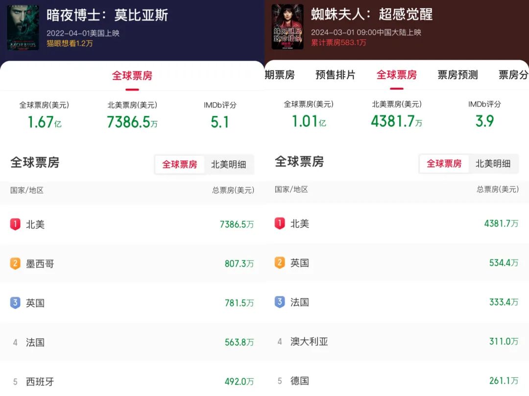 所幸《毒液3》在海外市场发挥不俗,基本达到索尼映前的期待值。据Comscore统计,《毒液3》共进军65个国家和地区,北美之外的收益为1.24亿美元,与本土合计则达到1.75亿美元。