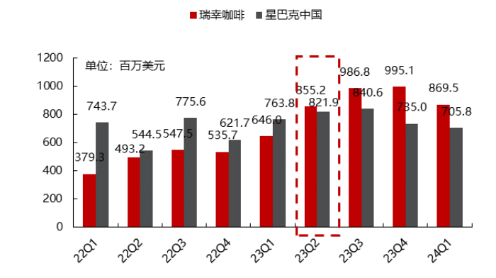 在收入方面,瑞幸在2023年第二季度的收入首次超越星巴克中国,并在全年保持领先。根据灼识咨询的数据,2023年前九个月,瑞幸以19.5%的市场份额位居行业首位,星巴克中国则以16.3%紧随其后。