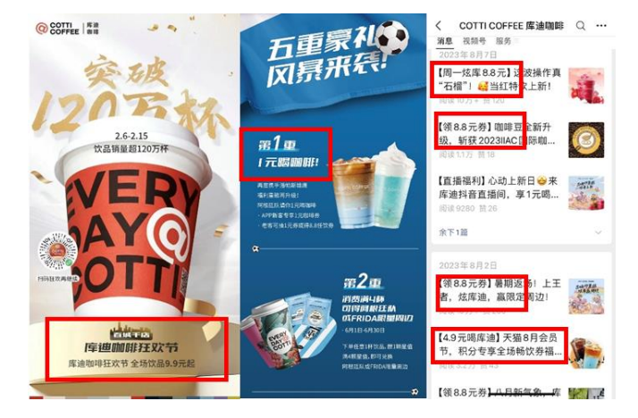 库迪咖啡在2023年2月启动了“百城千店咖啡狂欢节”,推出9.9元的超低价咖啡,不仅引发了市场广泛关注,也触发了一场价格战。瑞幸咖啡紧随其后,于6月推出“万店同庆,每周9.9元”活动,并通过抖音、美团等线上平台进行大规模团购,将低价咖啡推向常态化。