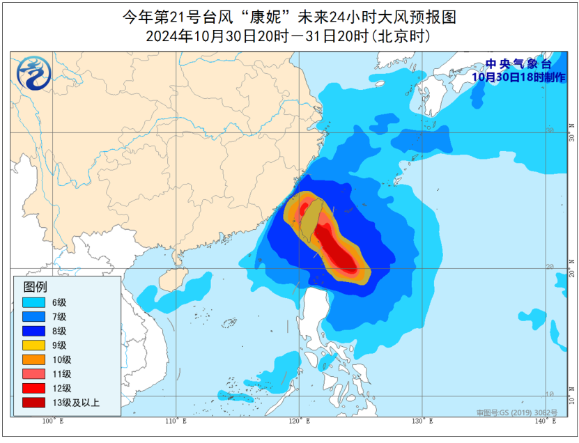 大风预报:30日20时至31日20时,受冷空气和“康妮”的共同影响,东海大部及钓鱼岛附近海域、台湾海峡、台湾以东洋面、巴士海峡、南海北部及东沙群岛附近海域、浙江沿海、福建沿海、台湾岛沿海将有7-9级大风,阵风10-11级;其中台湾海峡、台湾以东洋面和巴士海峡的部分海域、台湾岛东部沿海、福建中部沿海的风力有10-12级,阵风13-14级,台风中心经过的附近海面风力有13-17级,阵风17级以上。