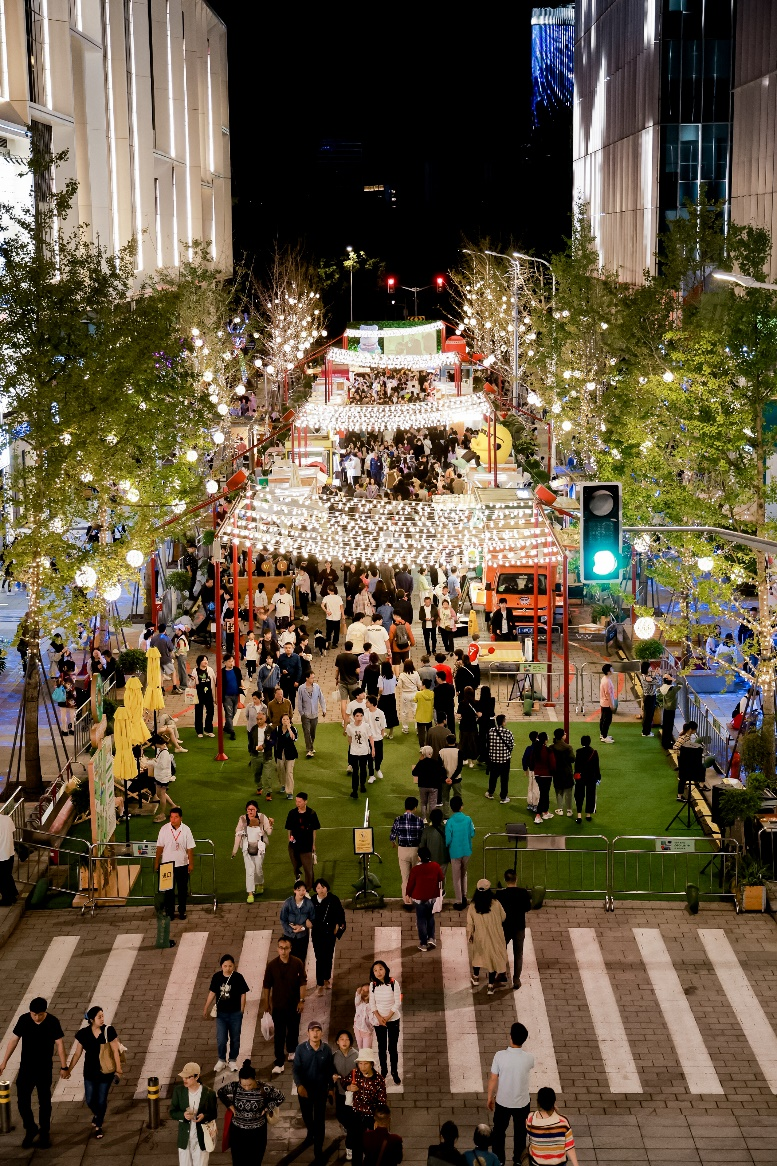 整个国庆黄金周,前滩公园巷携手沪上社群品牌SOCIAL SUPPLY,集结沪上高人气50+明星餐厅,配合音乐演出、户外运动体验等活动,打造出海派与国际交融的饕餮盛宴——“穿街走巷——新势力国际美食节”。此外,作为上海国际光影节浦东前滩商圈的代表,前滩公园巷结合街区特色,邀请了四位国内外优秀艺术家及艺术团队打造出“光屿公园”光影艺术展,进一步提升了前滩公园巷的传播能级。不出所料,为期9天的热巷活动一举打响前滩公园巷的名气,为前滩公园巷带来日超两万的客流,并使前滩公园巷跃居小红书浦东地区游逛排行榜TOP3。