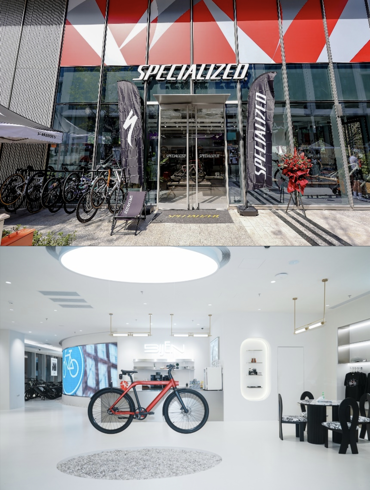 以“骑行友好为例”——由于前滩公园巷是骑行友好街区,巷内集结了专业的公路车品牌门店“同荣单车”及“Specialized闪电”、电助力自行车初创品牌BIJEN、奥运冠军钟天使为品牌大使的“WINCYCLE胜利单车”全国首店,以及涉及儿童自行车的“Detopia”概念店等五个细分品牌。即使对于专业骑行需求,这里也可以提供高水准的一站式服务。此外,这些品牌往往自有社群并定期举行社群活动,此类社群活动既可以增强品牌的客户粘性,也为前滩公园巷构建起坚实的骑行文化。如WINCYCLE胜利单车积累了大量的骑行粉丝伙伴,并在公园巷于8月启动了“巷耀开骑”活动,提升了前滩公园巷在区域内、乃至全市骑行爱好者中的知名度。
