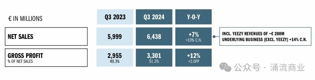 在DTC内部,阿迪达斯自己的零售店实现了两位数的增长,这得益于公司概念店的良好销售。由于Yeezy业务规模明显缩小,阿迪达斯电商收入在第三季度下降了3%。如果不包括Yeezy,电商收入则增长了25%以上。