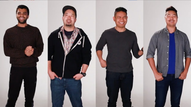 BuzzfFeed请来了四位亚裔男性,让他们仿照那些代言内衣品牌的知名男星,同样拍摄一组性感内衣大片。这四位各种角度来看都是路人脸,就连他们自己对自己的外表也缺乏自信