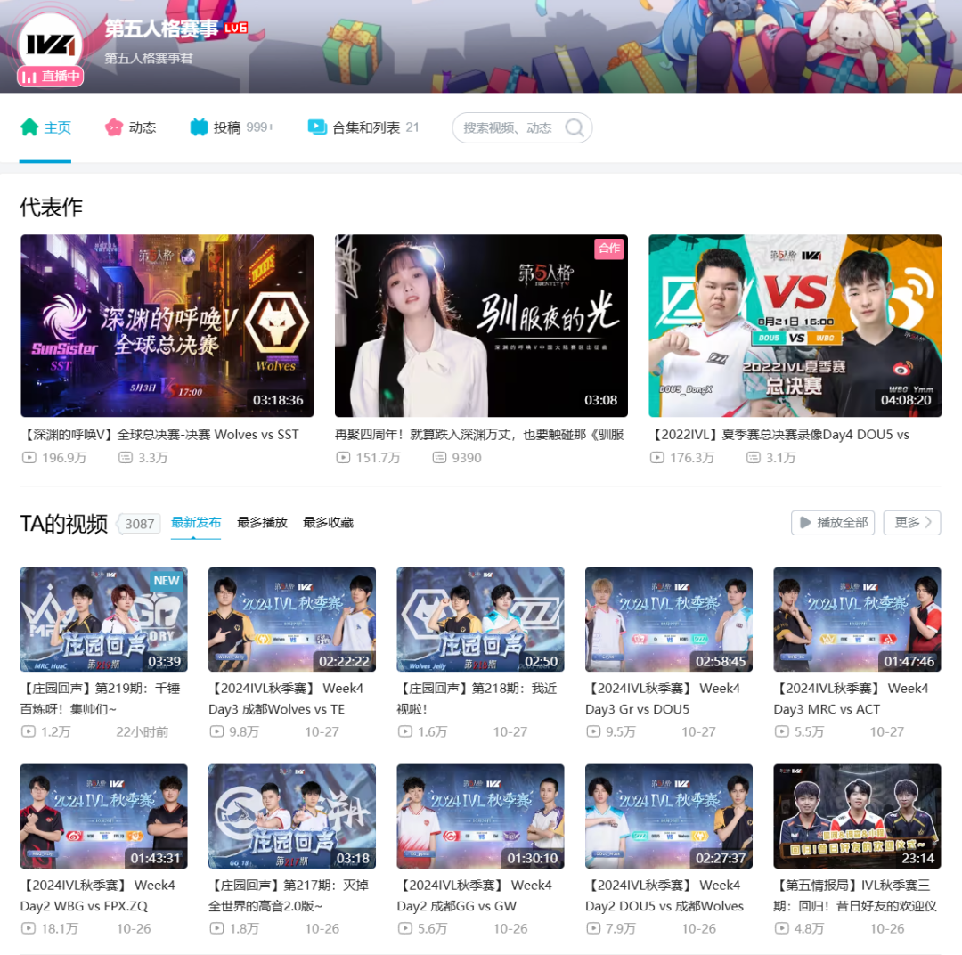 从游戏上线开始,便举办了《第五人格》跨平台精英赛,随后赛事系统不断完善,官方开始举办举办竞技比赛,如职业联赛IVL、全球顶级赛COA等。该赛事也引发大量关注,在B站上2022年「深渊的呼唤Ⅴ」COA总决赛视频,已有177W的播放量。
