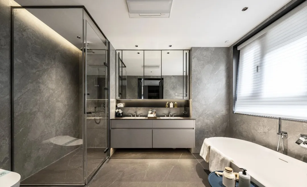 室内的空间,卫浴、厨房,往往是最能凸显豪宅生活细节的地方。拿卫浴来说,一般豪宅的做法,浴缸、双台盆都配齐了,这够不够豪?当然够,但都是标配的东西了。除此之外,能不能有新的想法?比如,看看这个:用双开门霸气打开方式,拿捏豪宅生活尺度。
