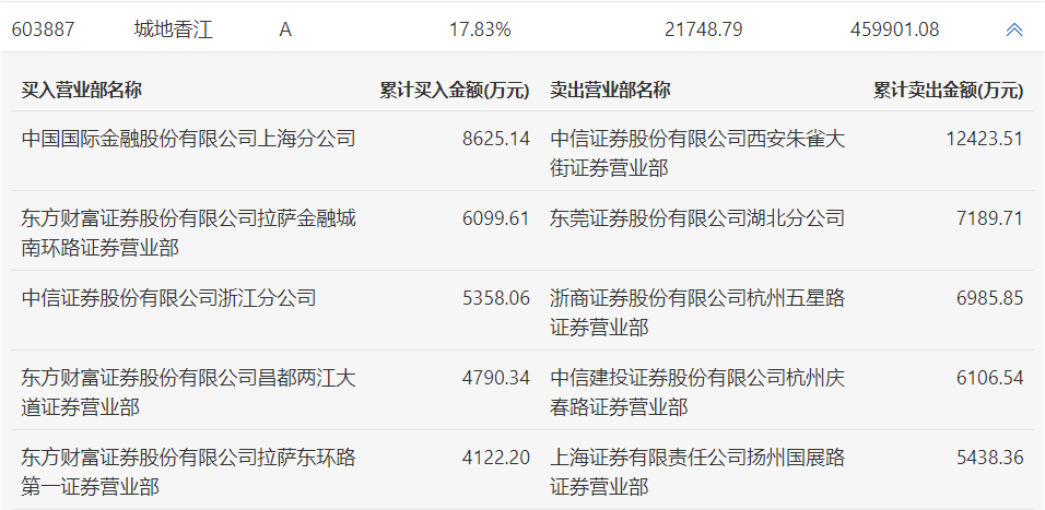 城地香江今日涨0.05%,龙虎榜数据显示,上榜营业部席位全天成交6.71亿元,占当日总成交金额比例为14.6%。其中,买入金额为2.9亿元,卖出金额为3.81亿元,合计净卖出9148.61万元。