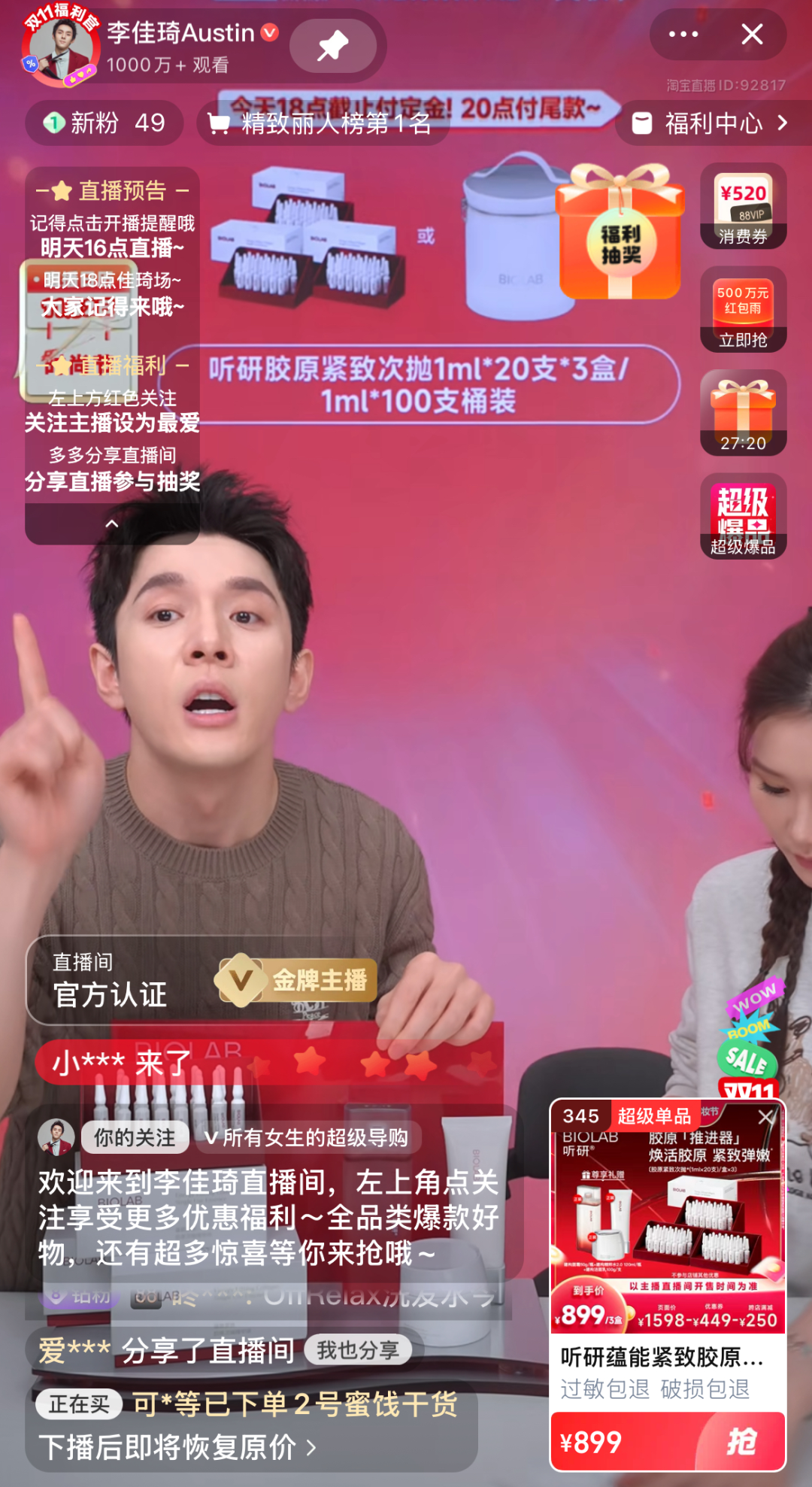 经过各种舆论风波李佳琦对粉丝的粘性依旧,对平台来说,李佳琦不仅仅是流量入口,同时也是某种信任背书。「没人能复制李佳琦」,直播电商行业见多了财富神话,习惯了起高楼楼塌了,但李佳琦始终不可替代。低价是第一生产力,砸出五亿现金红包谁能不喊一句真香,有消费者比价后发现,欧莱雅玻色因安瓶面膜,李佳琦直播间比去年便宜了60元,比今年618也便宜了30元。专业性同样是李佳琦多年积累的优势,前期宣传到位,早在双11开始前李佳琦就预热,发放小样赠品等;直播不啰嗦,没有演戏和砍价环节,这些恰恰是当下消费者反感的套路。