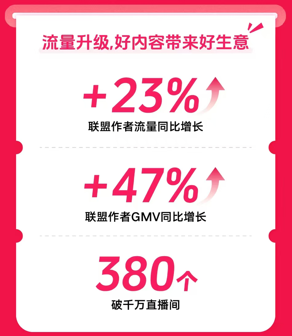 抖音是最早开启双11的平台,10月8日早早上线了“抖音商城双11好物节”。根据抖音官方发布的战报,10月8日至12日4天时间内,超过3000万成交的场次就高达21场;10月8日-10月17日,323个直播间成交额破千万。抖音双11半程战报,抖音电商总裁魏雯雯介绍,联盟作者流量同比增长23%,联盟作者GMV同比增长68%,截至20日已有380个直播间成交额突破千万。
