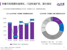 据艺恩发布的《2024年快餐消费者洞察报告》显示,在2013-2019年间,中式快餐市场基本成型,企业开始向连锁化、集团化方向发展,至2023年全国小吃快餐市场规模达8237亿元。这其中,西式快餐、中式米饭快餐声量占比最高,粉面类、饺子馄饨类、麻辣烫/冒菜类、粥品类等也各自占据一席之地。