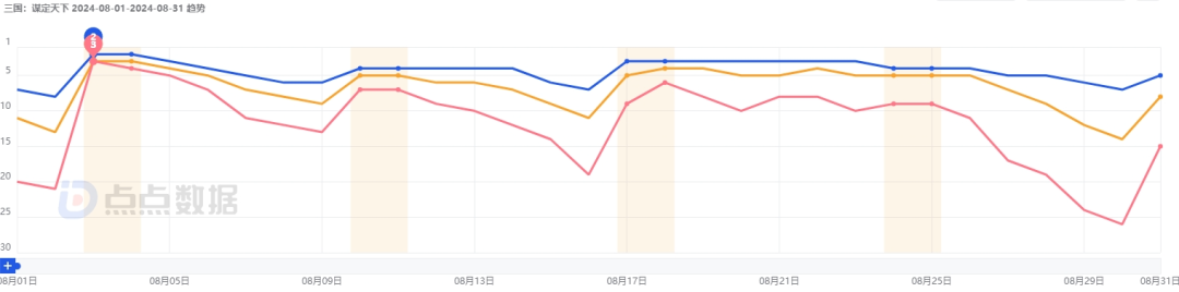 尽管售卖武将和城池皮肤等外观产品是一种可能的解决方案,但点点数据显示,《三国:谋定天下》在8月21日至8月27日期间开启的首个皮肤抽奖主题活动“白虹饮涧”并未对其在iOS畅销榜上的排名产生显著影响,这表明外观产品难以单独支撑游戏的营收重任。