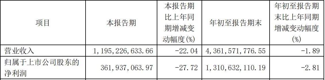 口子窖酒,2024年第三季度实现营业收入11.95亿元,同比下降22.04%;归母净利润3.62亿元,同比下降27.72%。