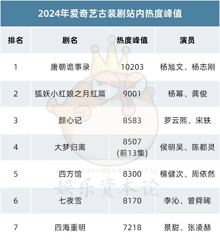 《云之羽》热度峰值9743,《大梦归离》热度峰值则是今年爱奇艺古装剧峰值Top4。因为无法用本名作为署名,郭敬明在《云之羽》时化名“顾晓声”,这次《大梦归离》化名“张弋敏”,也均能成为网友讨论郭敬明的话题点,《大梦归离》至今唯二进入热搜前十的两个词条都是他所贡献。