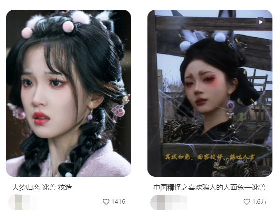 讹兽妆造在剧中被指夸张,与半年前网友创作网络短视频作品非常相似