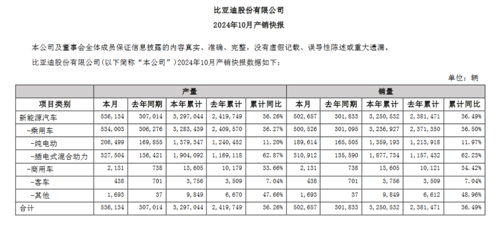 比亚迪疯狂卖车,月销量首次突破50万辆!10月卖车50.3万辆,同比增长66.2%,创下了单月销量增长新纪录。