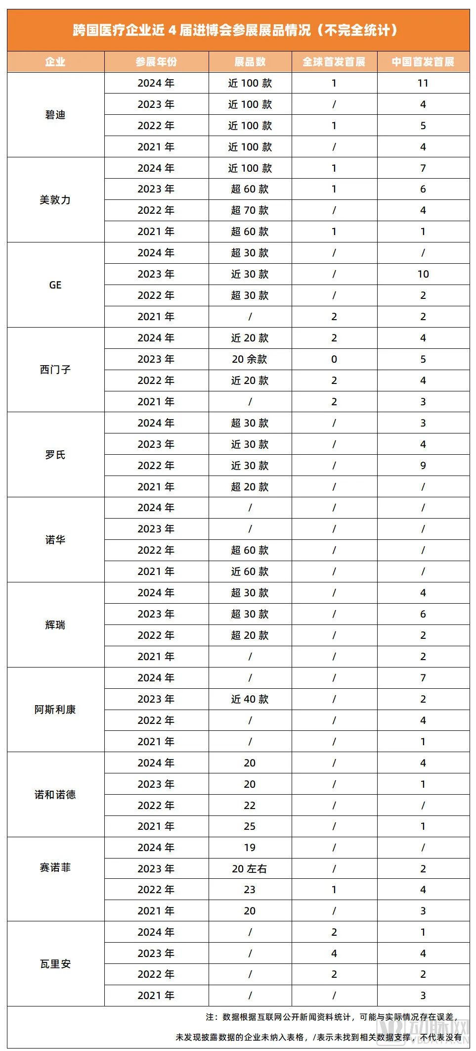 动脉网梳理发现,在前六届中,跨国医疗企业带来的参展产品数量屡创新高。其中,全球首发首展、中国首发首展产品的数量呈现逐年上升的整体趋势。