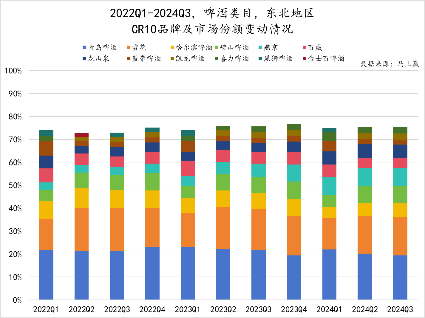 以啤酒占酒类市场份额最高的东北地区为例,就有如龙山泉、凯龙等表现突出的地方品牌。