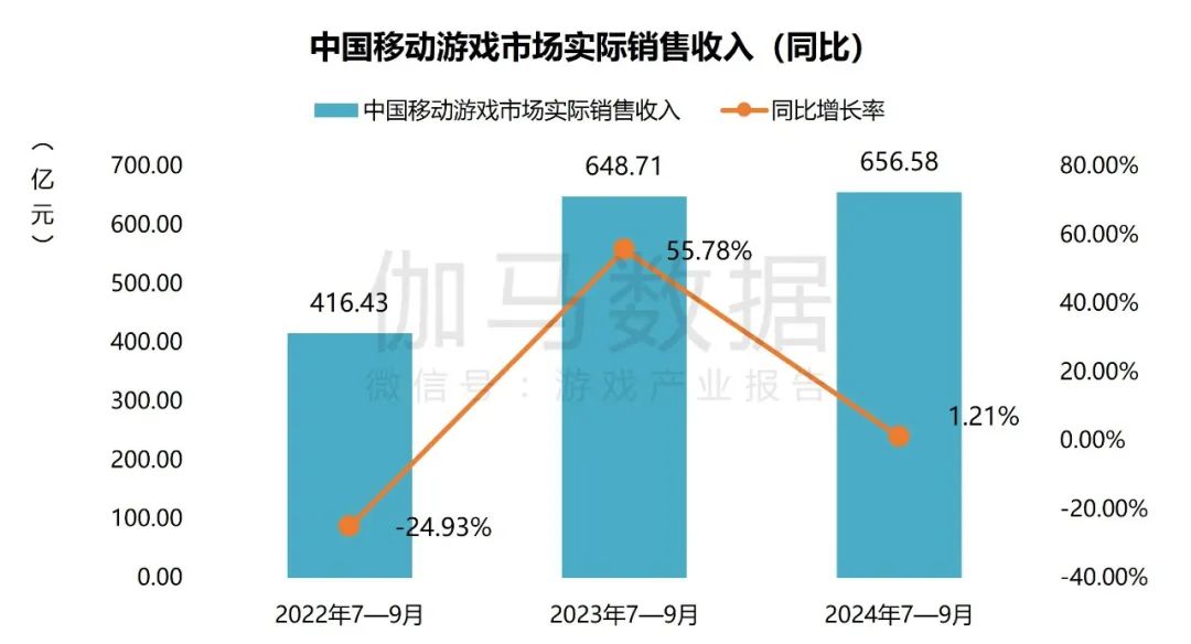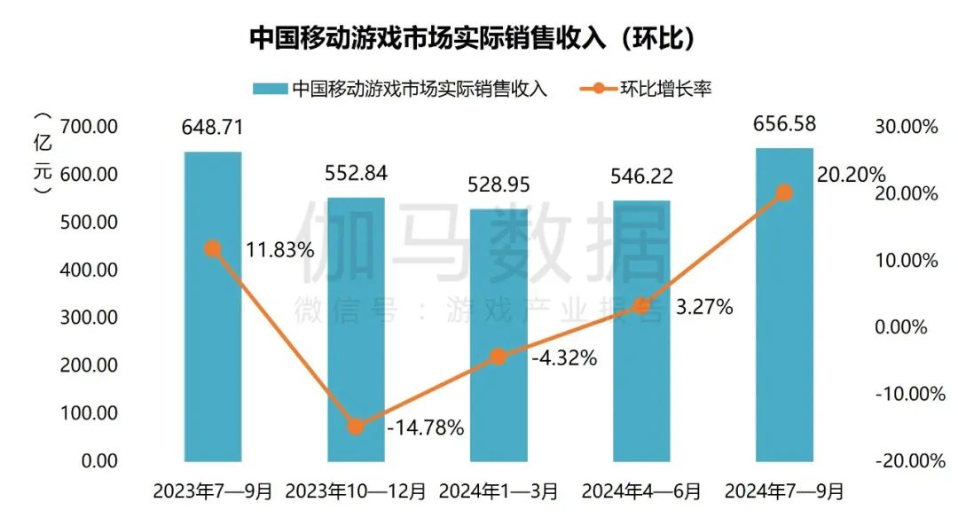 2024年7—9月移动游戏市场规模市场规模为656.58亿元部分长线产品和本年新游带来同比增长