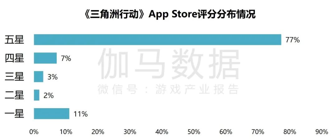 2024年7—9月,《三角洲行动》App Store五星好评率达77%。